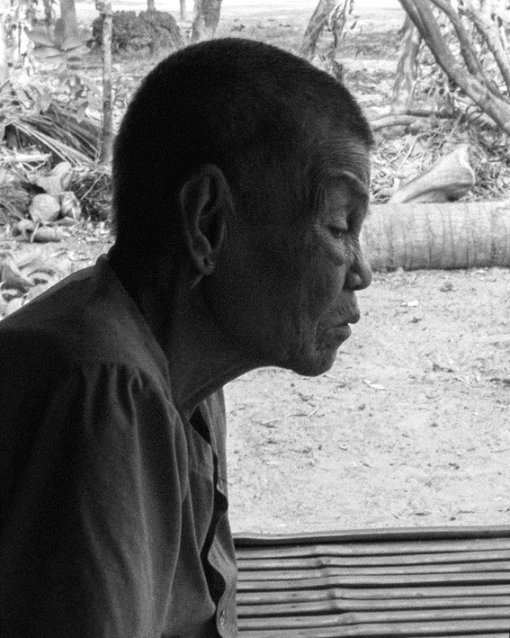 En una foto tomada en 2010, Phok Horm, de 84 años, reflexiona sobre los ataques a los que sobrevivió en el pueblo de Doun Rath. Foto: Tam Turse