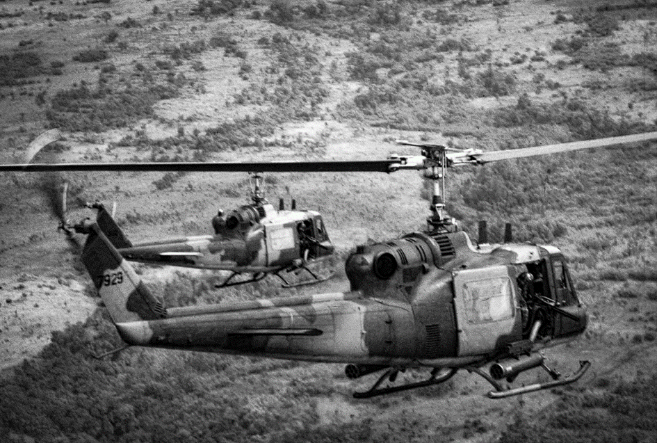 Helicópteros de combate estadounidenses sobrevuelan Camboya en 1970. Fotografía: Pictures From History/Universal Images Group vía Getty Images