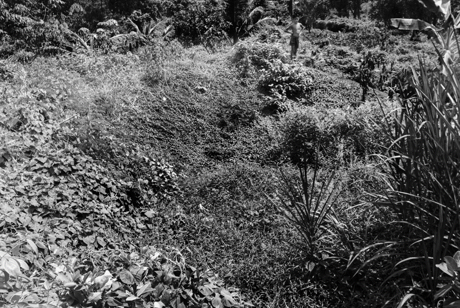 Sheang y Thlen dijeron que aproximadamente la mitad de las familias de Mroan -unas 250 personas- fueron aniquiladas por los ataques estadounidenses. Me condujeron a las afueras del pueblo, un derroche de follaje en todos los tonos de verde que se adentraba en una depresión, uno de los varios cráteres de bomba que quedan en las cercanías. «Aquí murieron unas 20 personas», dijo Sheang señalando el cráter. «Antes era más profundo, pero la tierra lo ha rellenado». Thlen -delgada, con el pelo canoso y los ojos marrones entrecerrados en un eterno estrabismo- movió la cabeza y se acercó al borde del cráter. «Fue desastroso. Sólo hay que ver el tamaño», dijo, añadiendo que este agujero era sólo uno de los muchos que una vez salpicaron el paisaje. «¿Cómo iba a escapar la gente? ¿Adónde podían escapar?».