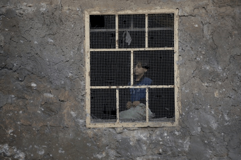 Un niño mira con recelo por una ventana bajo los repetidos bombardeos del régimen sobre Darat Izza el 1 de enero de 2024 [Ali Haj Suleiman/Al Jazeera].