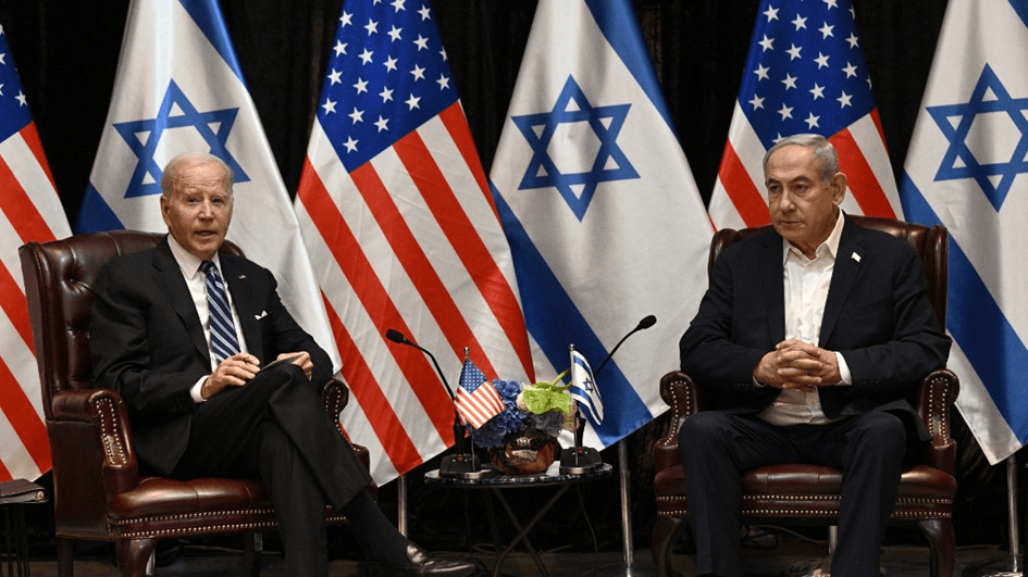 El presidente estadounidense Joe Biden escucha al primer ministro israelí Benjamin Netanyahu en Tel Aviv el 18 de octubre de 2023 (Brendan Smialowski/AFP)