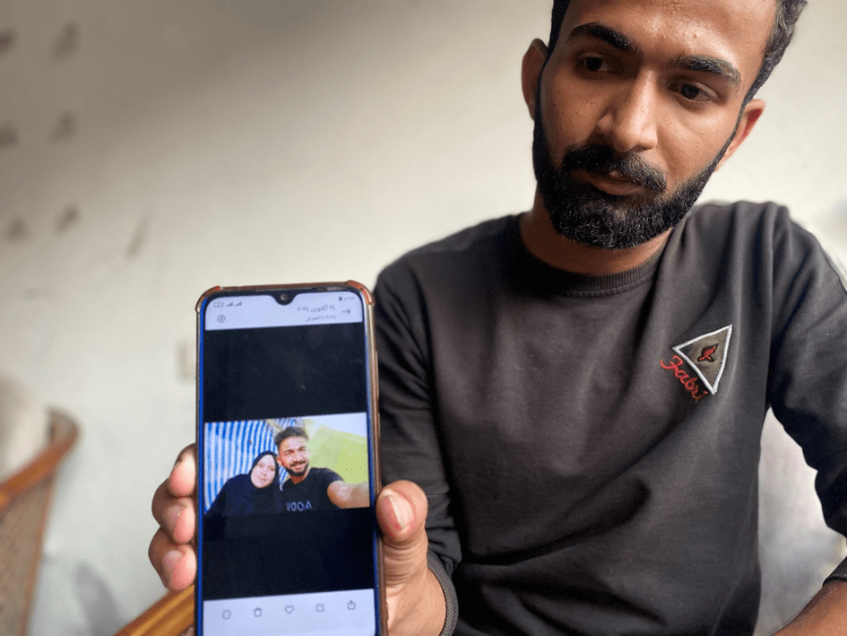 Ramez Abu Nasser muestra un selfi que se tomó con su madre antes de que muriera en un ataque israelí, el 4 de noviembre de 2024. Foto: Ahmed Dremly