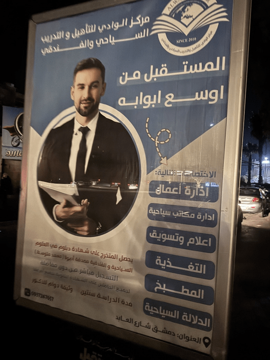 Por ejemplo, los anuncios de gimnasios muestran de forma prominente físicos hipermasculinos, glorificando la fuerza masculina y el dominio físico. Este énfasis en el cuerpo masculino como símbolo de poder refleja unos ideales perdurables de masculinidad que son anteriores tanto al régimen baasista como a sus sucesores. Estas imágenes perpetúan la asociación de la masculinidad con el control, la dureza y la dominación, reforzando las expectativas tradicionales de género.