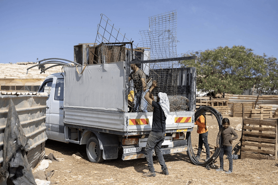 A mediados de semana, antes de que se produjeran enfrentamientos violentos o incidentes de robo de ganado, aproximadamente la mitad de los aldeanos palestinos habían empacado sus pertenencias y huido, y el resto se preparaba para hacer lo mismo: las familias comenzaron a cargar ovejas, muebles, pienso para animales y tanques de agua en camiones bajo la atenta mirada de los colonos.