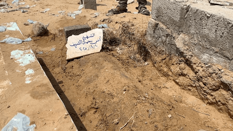 La tumba de Anas al-Sharif en la ciudad de Gaza, 11 de agosto de 2025. (Captura de pantalla del vídeo de Abdel Qader Sabbah)