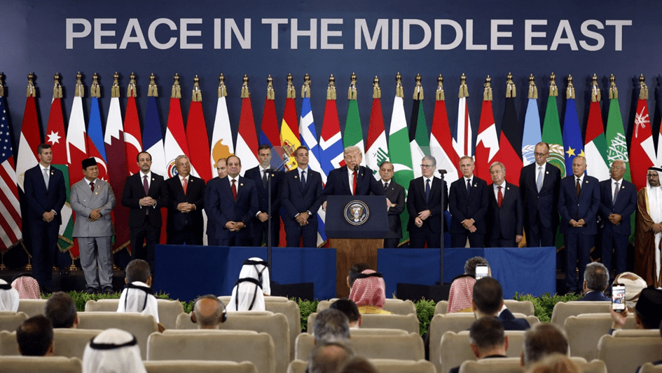 El presidente de Estados Unidos, Donald Trump, habla durante una cumbre de líderes mundiales para poner fin a la guerra de Gaza en Sharm el-Sheikh el 13 de octubre de 2025 (Reuters).