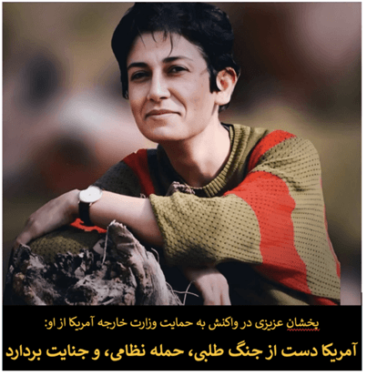 Por ejemplo, el 30 de septiembre de 2025, la cuenta Farsi X del Departamento de Estado de EE. UU. publicó una foto de la presa política Pakhshan Azizi en la que colocaron una bandera estadounidense y el sello del Departamento de Estado, pidiendo a Irán que revocara su sentencia de muerte y la liberara de inmediato. El mensaje original del Departamento de Estado en inglés también instaba a la República Islámica a respetar los actos pacíficos de protesta y a dejar de perseguir a los kurdos y otras minorías étnicas por sus legítimas reivindicaciones contra la discriminación.
