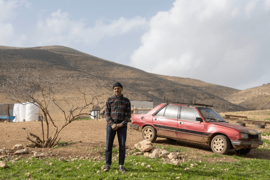 Foto de portada: Tawfiq Bani Odeh, vecino de la aldea palestina de Atuf, con su rebaño de ovejas en el monte Tammun, al norte del valle del Jordán, el 23 de enero de 2026. (Oren Ziv)