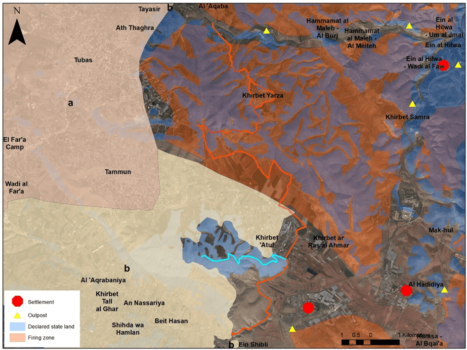 En la práctica, según una petición presentada por varios ayuntamientos y más de 100 residentes ante el Tribunal Superior de Israel, la barrera separará el Valle del Jordán del resto de Cisjordania; privará a los palestinos de aproximadamente 50.000 dunams de su tierra (777 dunams de los cuales serán confiscados y demolidos para la construcción); impedirá que unos 900 residentes al este de la barrera accedan a servicios municipales, como centros de salud, escuelas y oportunidades de empleo; y obligará a varias comunidades a abandonar el lugar.