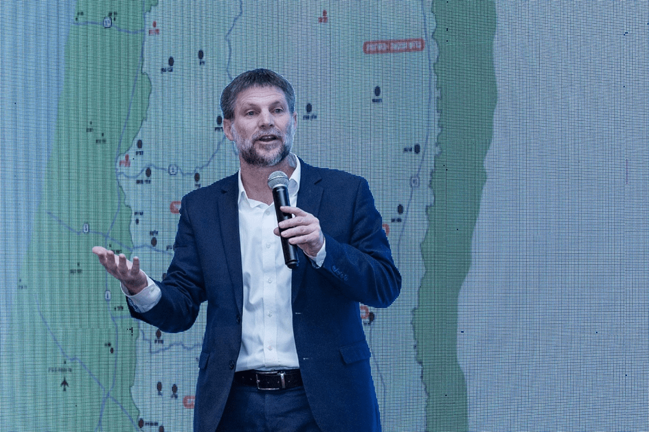 El ministro de Finanzas israelí, Bezalel Smotrich, habla durante una conferencia con líderes colonos, en el asentamiento de Psagot, en Cisjordania, el 17 de febrero de 2026. (Foto: Oren Ben Hakoon/Flash90)