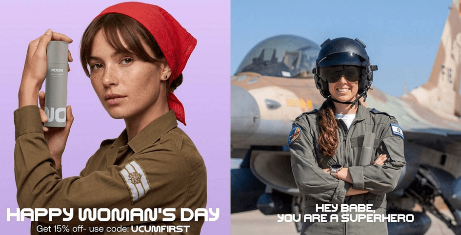 Consideremos, por ejemplo, un anuncio reciente de una empresa israelí de lubricantes: con motivo del Día Internacional de la Mujer, publicó una serie de imágenes en las que aparecían mujeres soldado (entre ellas, una piloto de combate y una soldado uniformada con el pañuelo rojo de Rosie la Remachadora), cada una con un bote de lubricante en la mano, acompañadas del pie de foto: «Oye, nena, eres una superheroína». O pensemos en los innumerables perfiles (en su mayoría de hombres) en aplicaciones de citas que incluyen fotos con uniforme militar, a veces con el telón de fondo de una Gaza destruida. En uno de esos perfiles con el que me topé recientemente, un francotirador de la reserva aparece fotografiado apuntando con su rifle desde la ventana de una casa en ruinas en Gaza o el Líbano.